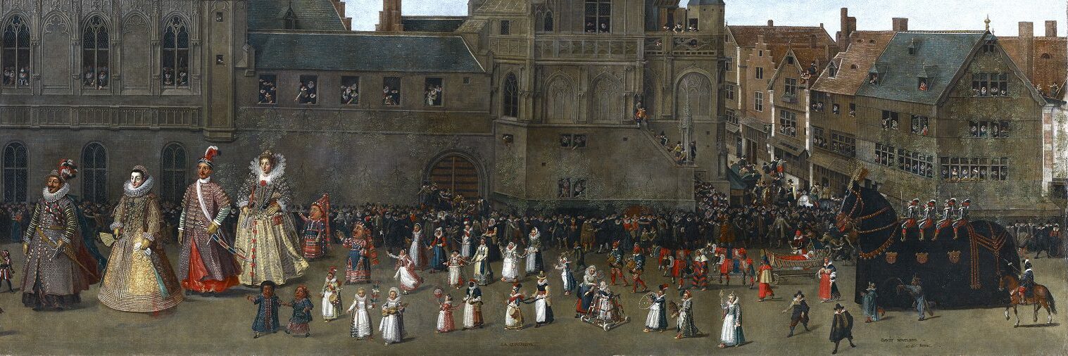 La pintura, datada en 1616 y con unas medidas de 118 x 237 centímetros, forma parte de una serie de ocho cuadros que representan las celebraciones organizadas en 1615 en Bruselas con motivo de la procesión de Nuestra Señora de Sablón, fundada por el Grand Serment (Gremio de los Ballesteros), una de las corporaciones más prestigiosas de Bruselas.