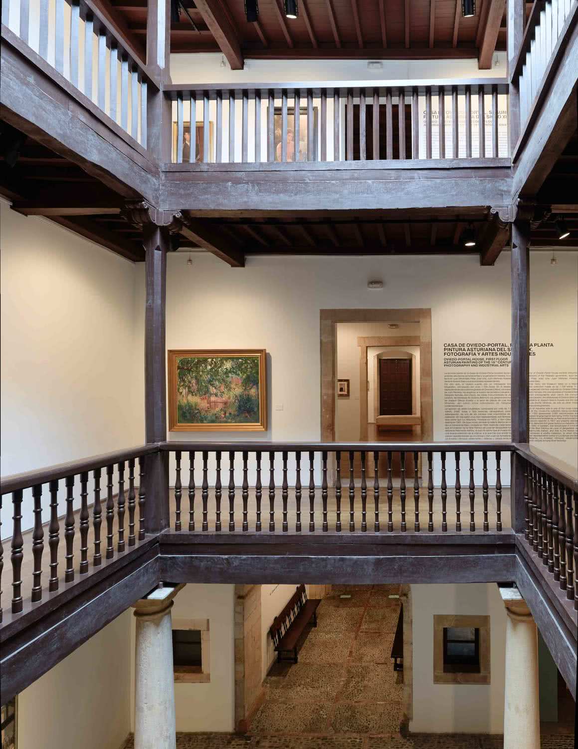 La Casa de Oviedo-Portal. Edificio nobiliario del siglo XVII, construido en 1659-1660 por Melchor de Velasco para Fernando de Oviedo-Portal. Acoge los fondos del siglo XIX asturiano y distintos gabinetes dedicados al dibujo, el grabado, la fotografía y las artes industriales. (Desde su planta 0 se accede a la planta 0 del edificio de Ampliación)