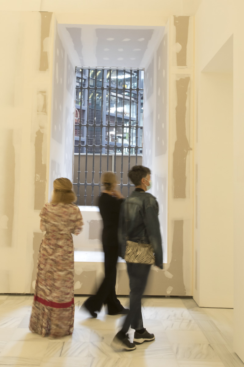 Precisamente uno de los principales objetivos de esta reforma ha sido poner en valor el patrimonio arquitectónico del Reina Sofía. De esta forma se ha recuperado el alzado original de la fachada del edificio; se han rescatado los huecos históricos y se han recolocado las verjas originales del siglo XVIII. El interior de los espacios expositivos también respeta el ritmo de los huecos de la fachada y su continuidad en el desarrollo de las bóvedas históricas. También se ha querido volver el carácter original de las zonas que hacen 300 años eran espacios de circulación, al conectarlas con las escaleras existentes y recuperar su materialidad originaria.