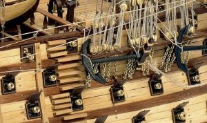 Maqueta Santísima Trinidad. Detalle de baterías de cañones y escalas de acceso