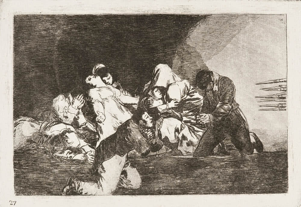 En los Desastres de la guerra (1810-1815), el pintor refleja con impactante crudeza el terror que se vivió en España durante la Guerra de la Independencia. Mediante sombras dramáticas, Goya narra los maltratos y las torturas a las que se sometió a mujeres, niños y hombres, como vemos en Grande hazaña con muertos (desastre número 39).