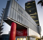 KBr está situado en uno de los edificios más representativos de la Barcelona contemporánea: la Torre MAPFRE. Ubicada, en concreto, en un amplio espacio curvilíneo al nivel de la calle, la nueva sede dispone de 1.400 metros cuadrados y cuenta con dos salas de exposiciones, un espacio para actividades educativas, una sala polivalente para convocatorias con público y una librería.