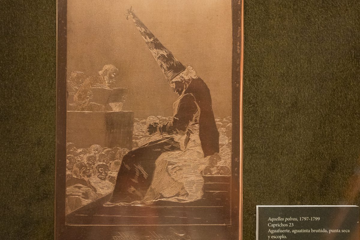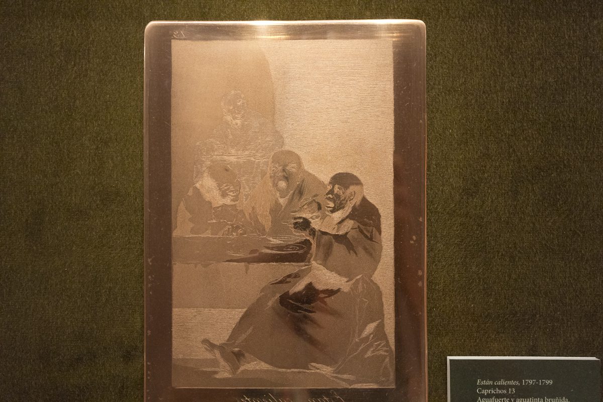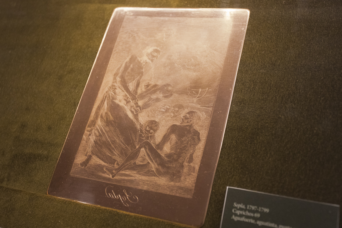 En el importante conjunto de matrices conservado por la Calcografía, que reconstruye la historia del grabado español, destacan las 228 planchas grabadas al aguafuerte por Francisco de Goya, que se han incorporado a la institución en diferentes etapas y que, sin duda, constituyen una de las cumbres del grabado universal.