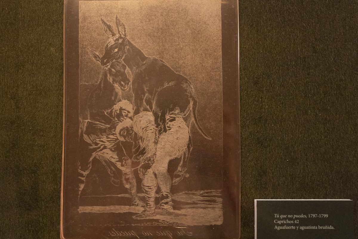 El Gabinete Francisco de Goya de la Calcografía Nacional muestra una selección de matrices realizadas por el artista, desde sus primeros contactos con el mundo del grabado, copiando las obras que de Velázquez se conservaban en el Palacio Real o sus primeros grabados de invención (El agarrotado y San Francisco de Paula), hasta las planchas correspondientes a sus cuatro series: Caprichos, Desastres de la guerra, Tauromaquia y Disparates. Todas ellas son un alegato a favor de la libertad de creación, huyendo de convencionalismos y reglas.