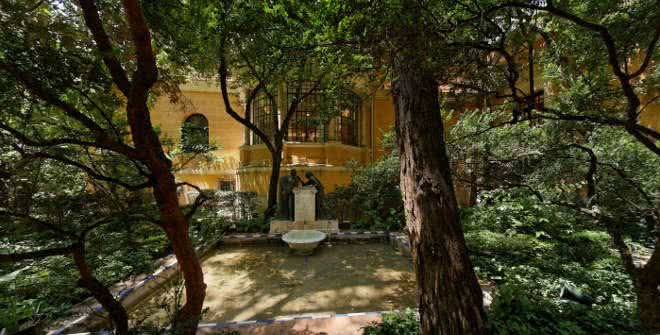 Su jardín es un homenaje al jardín mediterráneo donde se mezcla lo italiano y lo andaluz, y a pesar de su pequeño tamaño logra crear un ambiente sosegado, un espacio donde el visitante puede prepara su ánimo aislándose de la la ciudad que, al otro lado de la tapia, parece muy remota.