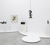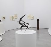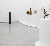 La museografía empleada participa de igual modo de la curva, articulando el ritmo de la exposición con estructuras en el suelo que crean formas circulares. La gran variedad de piezas, desde esculturas de bulto redondo y relieves tridimensionales a dibujos, da lugar a diferentes mecanismos expositivos entre los que llama especialmente la atención la obra colgante en el centro de la sala.