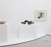 Chillida, cuando trabajaba en el homenaje a Miró tras su muerte en 1983, reparó en algo fundamental: mientras que en la obra del catalán lo que predomina de la forma curva es lo convexo, es decir, la parte exterior, en la suya lo predominante es lo cóncavo, esto es, el espacio interior, el espacio que queda. Es exactamente esta convicción en torno a la investigación espacial sobre la cual reposa el hilo conductor de una exposición que pretende “hacer presente eso que, a veces, pasa tan desapercibido como es la naturaleza del espacio”.