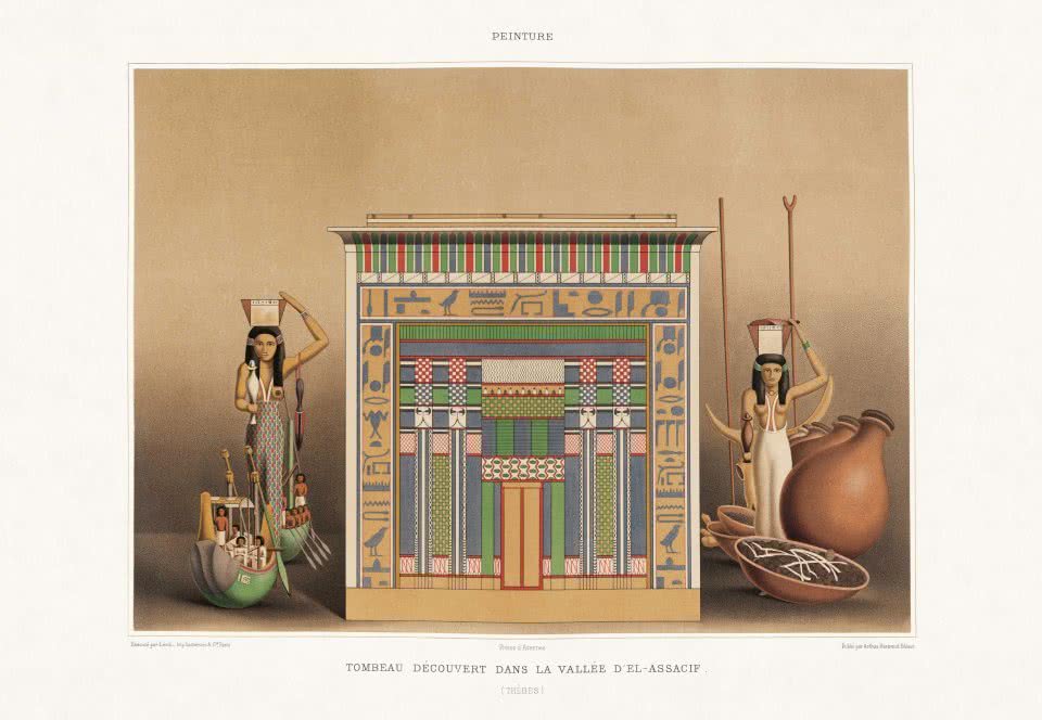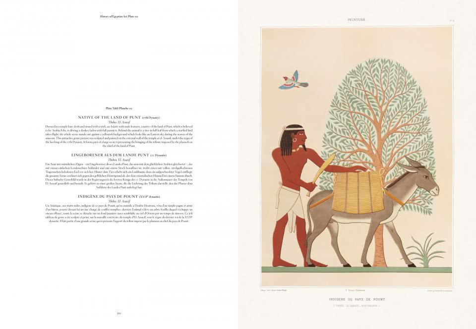 En 1844, Prisse d’Avennes viajó de Alejandría a Francia, donde tres años después publicó Les monuments égyptiens. Este libro incluye 51 láminas -cromolitografías en su mayoría, pero también láminas en color- reproducidas a partir de los dibujos que Prisse d’Avennes realizó durante los años que vivió en Egipto.
