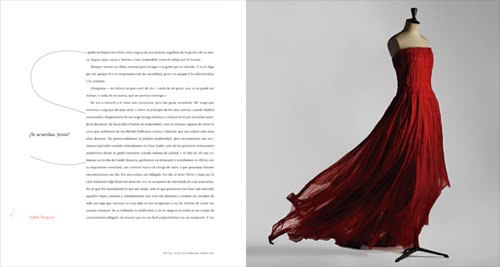 El volumen cuenta con textos de Vicente Verdú, Juan Gatti, Toni Miró, Sofía Torga, Margarita Riviere, René López de Haro, Silvia Alexandrovich, Luis Casablanca, Javier Vallhonrat, Alberto Campo Baeza, Emilio Sagi, Salvador Mateu y Lola Gavarrón. Además incluye testimonios de personajes como Manuel Pertegaz, Enrique Loewe, Ana Belén, Iñaki Gabilondo, Violeta Sánchez, Pilar del Castillo, Elena Ochoa, Amaia Ubiria o Cristina Marsans.