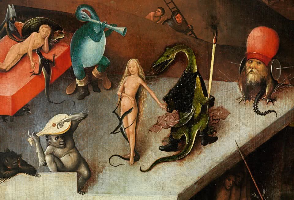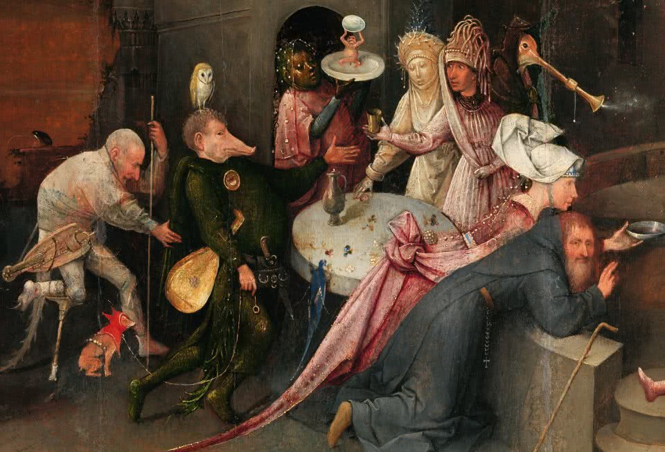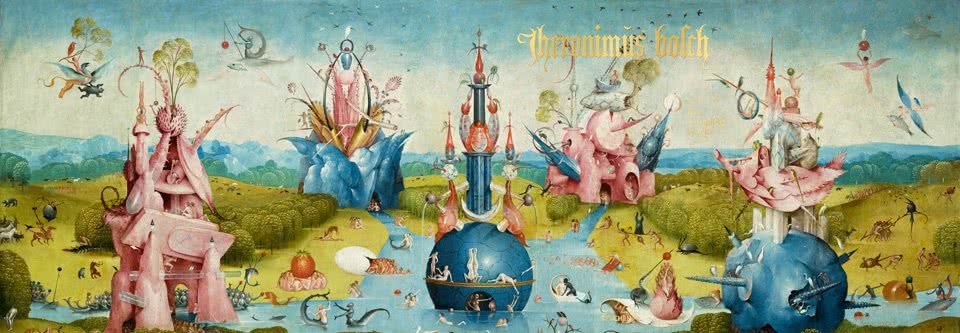 En medio del clima artístico con tendencias realistas del gótico tardío y el Renacimiento temprano, El Bosco constituyó una rareza de su tiempo. Sus pinturas están cargadas de escenas grotescas protagonizadas por seres fantásticos que sucumben a fantasías, angustias y anhelos humanos. Una de sus grandes genialidades fue tomar las representaciones figurativas conocidas como drolleries, que utilizan monstruos y seres grotescos para ilustrar los pecados y el mal, y trasladarlas de los márgenes de los manuscritos miniados a pinturas en retablos de gran formato.