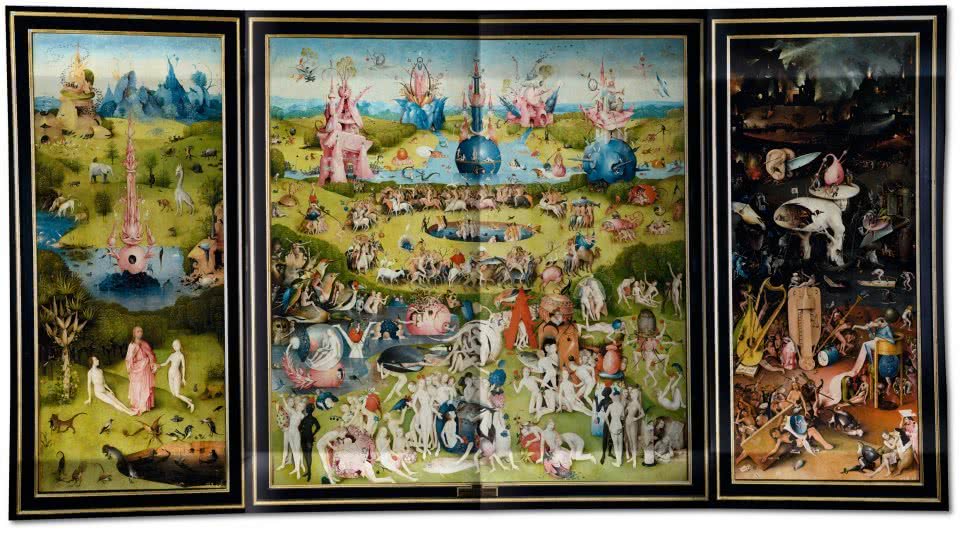 El volumen de Taschen incluye nuevas fotografías de obras restauradas recientemente y abarca el conjunto de la obra del artista. Cuenta con magníficas reproducciones, ricas en detalles, y un desplegable de más de 110 cm de anchura de El jardín de las delicias.