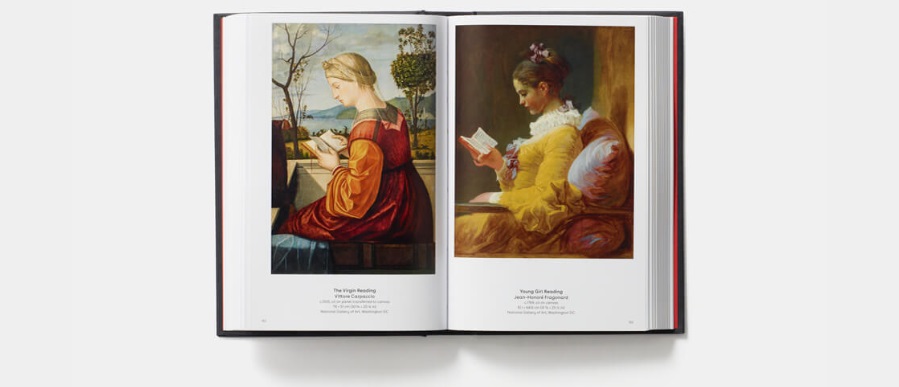 Cada una de las obras elegidas en esta cuidadísima edición, desde esculturas clásicas y frescos a, entre otras, piezas de Rembrandt, Fragonard, Perugini, Durero, Manet, Hopper, Van Gogh, Whistler, Currin o Ukiyos, representa y homenajea a la lectura y a los lectores.