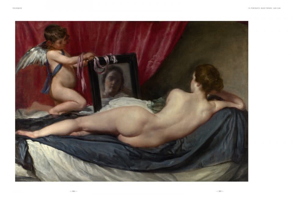 Las deslumbrantes imágenes de esta obra se acompañan de los textos de José López-Rey acerca del interés de Velázquez por la vitalidad humana y la forma en la que sus cuadros centran por igual la atención en todo lo que recogen, desde la vieja friendo huevos hasta un rey o un papa, así como el protagonismo que otorgaba al color y a la luz.