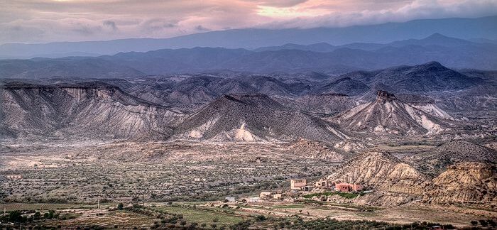 Pocos lugares se han transformado con más ahínco en otro que aquella Almería de desiertos lunares y playas vírgenes moldeadas por las manos de la erosión o el capricho de los dioses. En este caso, los parajes costeros de Carboneras, las depresiones volcánicas de Níjar, las dunas del Cabo de Gata y las ramblas de Tabernas se convirtieron en otros tantos lugares de la península arábiga y, como el rodaje se prolongó durante varias semanas, no fueron pocos los vecinos de Torre Cadima que se apuntaron para figurar como extras bereberes a pie o a caballo en la película; de esta manera, podían obtener en unos cuantos días los ingresos económicos que habitualmente conseguían en meses trabajando en sus oficios habituales, con el añadido de poder presumir delante de sus familiares y amigos de alguna que otra fotografía posando al lado de Peter O’ Toole, Omar Sharif o Anthony Quinn.