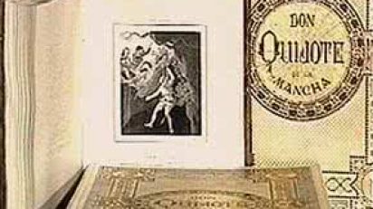 Cuatro tomos de El Quijote del año 1819, un libro de la vida de Cervantes y otras publicaciones, textos legislativos, manuscritos, retratos de personalidades...