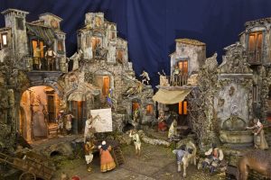 De acuerdo con Joseph Ratzinger, el trasfondo de ello se encuentra en un pasaje del Libro de Isaías: “Conoce el buey a su dueño, y el asno el pesebre de su amo, pero Israel no entiende, mi pueblo no tiene conocimiento” (Is 1, 3). A partir del siglo XV, la tradición belenística representa el refugio como un establo o portal, en cuyo interior se muestra a la Sagrada Familia acompañada de los animales. El arte de los belenes adquirió su pleno desarrollo en Nápoles durante el Renacimiento y el Barroco, adquiriendo gran fama los llamados “belenes napolitanos”, hasta el punto que, en el siglo XVIII, el rey Carlos III ordenó que se facilitase la llegada de los mismos a todas las partes del reino.