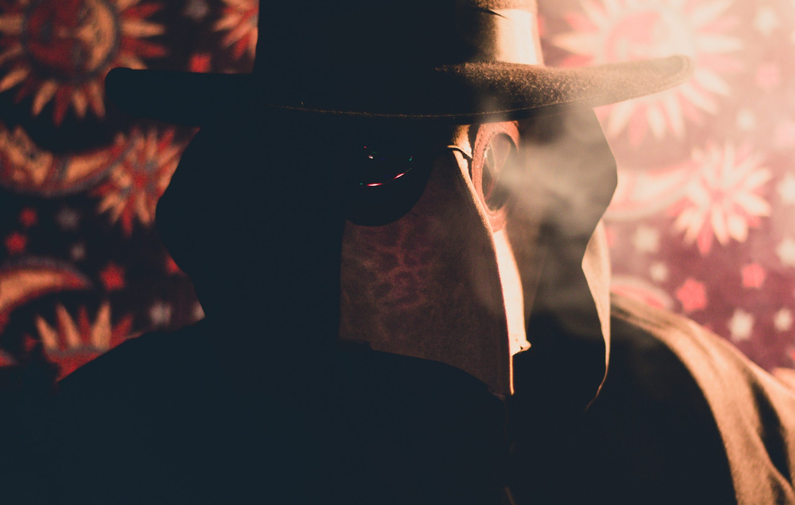 Sobre las diez y media de la noche apareció en casa. Entró totalmente colocado, vestido con una especie de túnica negra, sombrero y la máscara de la peste con forma de pico de pájaro que había llevado en su propio velatorio y que se quitó enseguida para dejar ver sus ojos teñidos de rojo. Yo estaba hablando por videoconferencia con Gala y nos tomábamos un vino “juntos”. Como tenía enfocada la cámara del ordenador hacia la puerta, le vio entrar y a su vez Mendoza vio en la pantalla del ordenador la figura de Gala con la copa de vino en la mano.