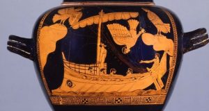Crátera de figuras rojas. La Odisea. Odiseo y las siernas. Siglo V a. C. (detalle).