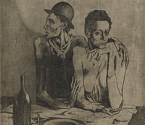El ejemplar de Le Repas Frugal, un grabado de 1904 de una edición especial en papel japonés, sale al mercado con una estimación de entre 150.000 y 200.000 euros. Perteneciente a la serie Saltimbanques, es, no sólo una obra maestra entre la gráfica del siglo XX, sino también una imagen depurada de su periodo azul. El tema hace una potente alusión a los estragos de la juventud del artista en el barrio bohemio de Montmartre. Un hombre y una mujer sentados con una botella y escasos víveres en la mesa demuestran la preocupación del artista por reflejar el alcoholismo y la pobreza con un realismo impactante.