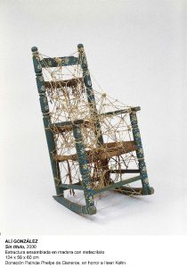 Interesado por las relaciones espaciales, Alí González (Venezuela, 1962) utiliza la instalación para cuestionar el espacio museístico y un nuevo orden que abra vías comunicativas. Su obra Sin título (2000) es una mecedora cubierta en una red de cuerdas, pudiéndose interpretar como una materialización de las restricciones impuestas por la construcción social del género.