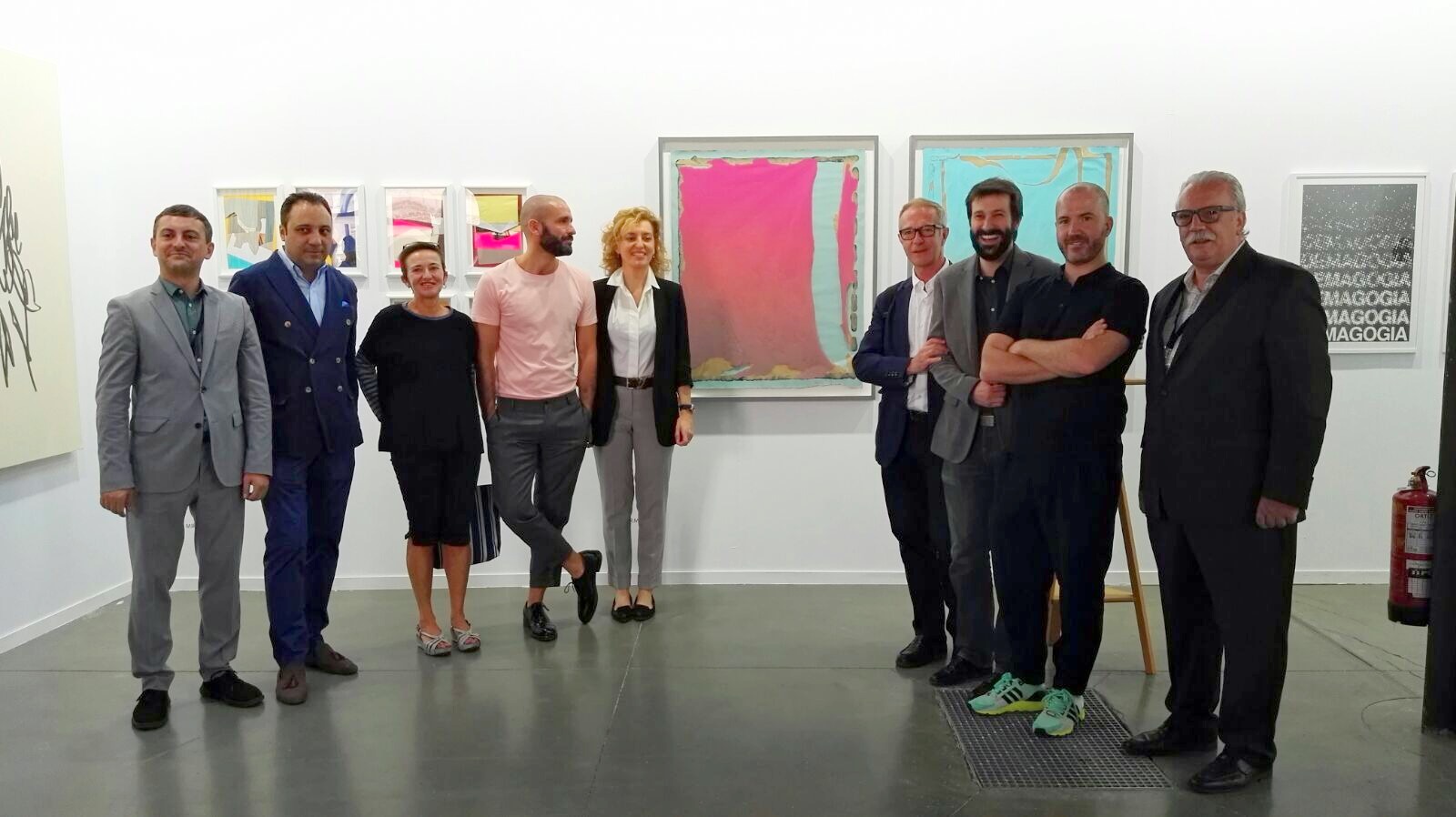 Se trata de una serie, Telón, formada por dos piezas realizadas en 2016 en acrílico sobre papel y con técnica mixta. El jurado reunido en la feria, que ha abierto este jueves sus puertas, ha galardonado a este artista por su «lenguaje formal e híbrido como resultado de la asimilación de una gran variedad de voces y referencias artísticas en sus obras, que ocultan una complicada red de simbolismos ligados a espacios y contextos específicos». Igualmente se ha valorado la coherencia de su trayectoria y la proyección del artista, así como el tratamiento formal y la resolución técnica en sus trabajos.