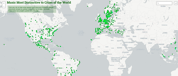 Además, el mapa se actualiza automáticamente cada dos semanas, lo que permite a los usuarios viajar musicalmente a lo largo de todo el mundo y poder tomarle el pulso a la escena musical de cada ciudad. Todas las actualizaciones suponen un análisis de cerca de 20.000 millones de canciones escuchadas por los usuarios de Spotify.