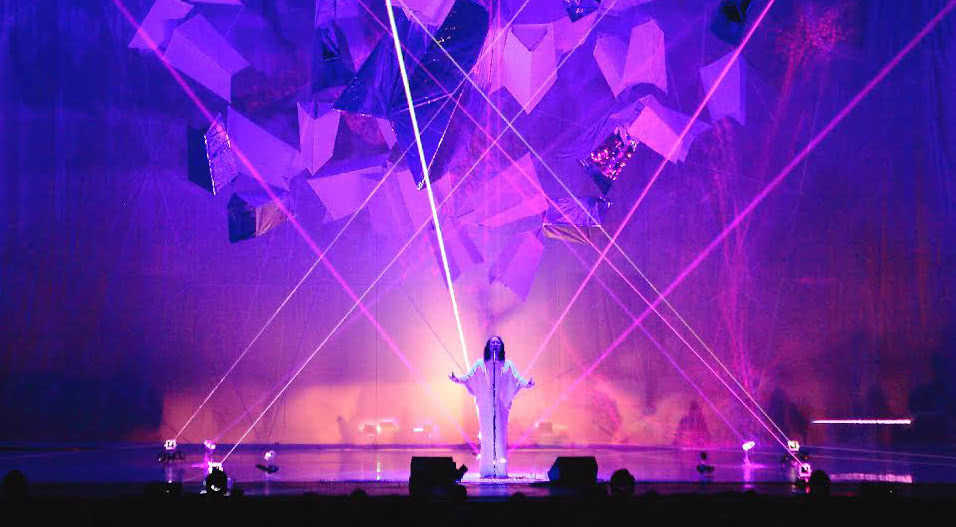 «Me gustaría también citar a Chris Levine, el artísta lumínico que me acompaña. La idea del espectáculo es poner algo blanco sobre la absoluta oscuridad. Es como si fuera un cristal en una montaña de oscuridad».