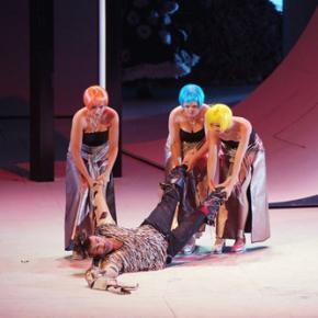 Un perro en el escenario, una bañera en la que Diana se baña vestida, el vestuario mutante de Amor y las pelucas de colores de las tres damas, combinadas con la tecnología visual presente en el escenario, hacen que no pase desapercibido el montaje, a pesar de que en ciertos momentos el escenario parece demasiado grande para el poco movimiento existente.