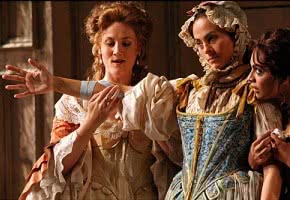 La producción de Jonathan Miller data de 1998 y ha sido sometida desde entonces a algunos retoques por parte de Gregory Keller. Estos retoques mejoran el movimiento escénico, manteniendo, eso sí, la tradición del teatro de aprovechamiento de su gran capacidad escénica y la fidelidad al tiempo y vestuario que marca el libreto, junto a decorados opulentos y grandiosos, que poco a poco van desapareciendo, eso sí, con un gran aprovechamiento de la inversión realizada. Todo ello unido da como resultado una muy agradable representación.