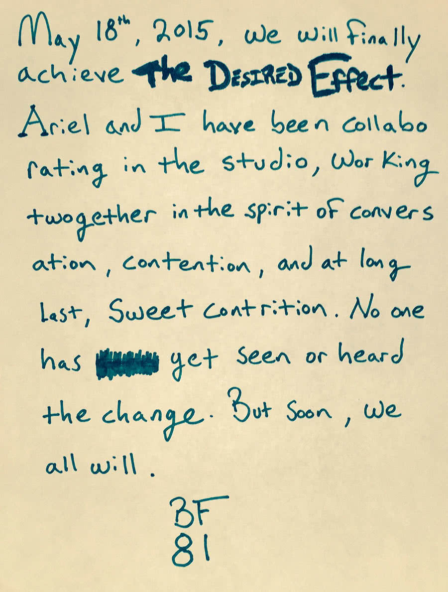 album-announcement-d8057880Brandon Flowers también anunciaba a través de su página web y mediante una nota manuscrita que había estado trabajando junto al productor Ariel Rechtshaid (Haim, Vampire Weekend, Charlie XCX) y que la grabación del álbum se realizó en los estudios de The Killers, Battle Born, en Las Vegas.