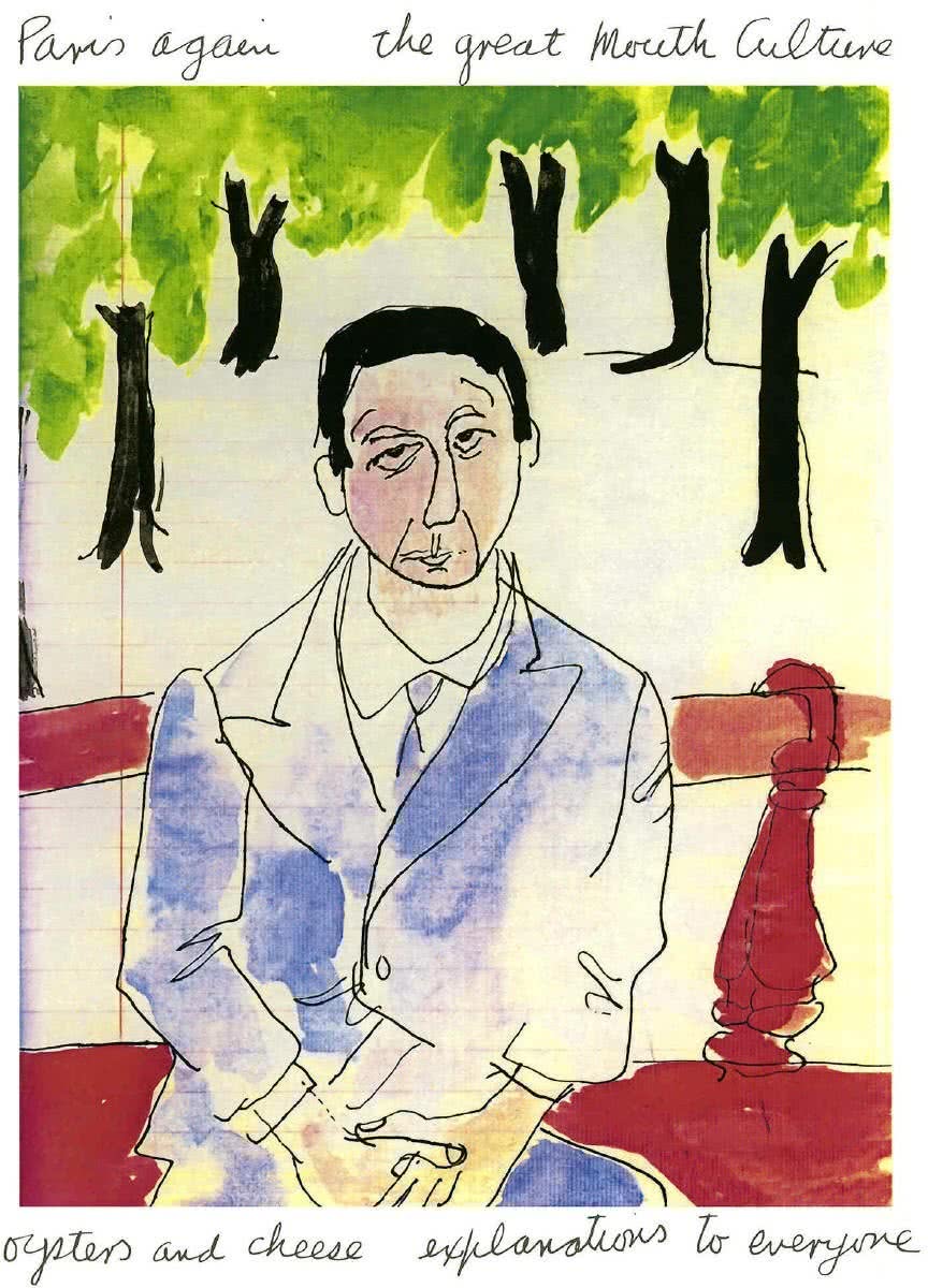 Además de escribir, componer y cantar, pintaba, como demuestra este autorretrato en París. En el dibujo parece ausente, despreocupado, A Thousand Kisses Deep, resguardado allí donde sólo te llevan los besos, a salvo de todo. La felicidad, como el amor, como la paz, no se consiguen si se buscan: se encuentran, en nuestro día a día, en la vida sin más; o eso dice al menos su maestro zen. A mil besos de profundidad, o profundo como mil besos. En cualquier caso, Leonard Cohen.