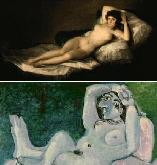 Picasso juega y nos invita a jugar, se trata casi del escondite, permitiéndonos así encontrar a Ingres tras el Retrato de Gertrude Estein; a Zurbarán en un Homme á la guitarre; y a Manet y Velázquez tras miles de desnudos.
