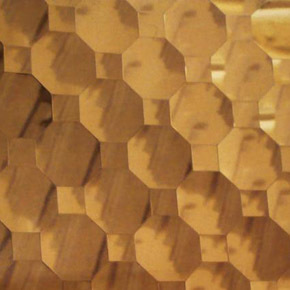 En el caso de Islamic Mirror, la sensualidad material está contenida, por una parte, en el juego de opuestos (luz-oscuridad, cóncavo-convexo… Círculo-cuadrado, en fin, que se encuentran en infinitesimales hexágonos) y en esa mística matemática que palpita en la obra (el paso de la esfera al ángulo, la figura geométrica perfecta, la posibilidad de representar el infinito…); y, por otra, en su interacción con el ámbito en que ha sido instalada.
