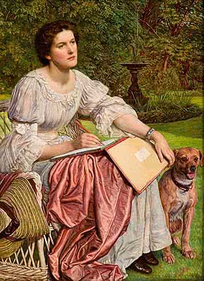 Reconstruir los hechos es fundamental. Los pinceles de Hunt se colocan sobre la tabla en 1893 y el trabajo se abandona hasta el otoño del siguiente año. La entonces adolescente y ahora joven Gladys posa junto a su terrier en los jardines de la casa del pintor en Draycott Lodge, pero no es la primera vez que lo hace. Holman Hunt ya la retrató en 1891, tal y como atestiguan una fotografía y un magnífico dibujo. En 1894 la obra está terminada o, más bien, Hunt deja de trabajar en ella. Entre 1904 y 1910 entra en acción la visión de Hughes y se introducen las modificaciones. Cambia la superficie, desaparecen algunas áreas de color y, de pronto, entre tal baile de sutilezas, bajo el tamiz de unas preciosas pinceladas, surge la cuestión que nos preocupa: el cambio de gusto. El discurso vuelve a dar un giro doble: dos pintores, los dos del mismo siglo, pero que pintan un mismo cuadro en dos siglos distintos (recordemos que Hunt “toca” con su pincel en 1893 y Hughes “retoca” hacia 1904). El rizo se riza, porque por un lado son dos pintores que aprenden en una misma época y que, además, según está documentado, mantenían una relación de amistad; pero por otra parte pintan una misma obra en dos instantes diferenciados. Está claro que ambos pueden abrazarse a la etiqueta de artistas finiseculares, esto es, que cierran una centuria y abren otra. Pero no hay que olvidar, precisamente por eso, el hecho en sí de cuándo intervienen sobre la obra.