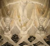El artista inglés llenó sus obras de figuras, sin seguir la tradición paisajística típica del mundo inglés. Blake insiste en sus dibujos, acuarelas y grabados en un arte emblemático, exento de la narratividad tradicional. Sus connotaciones espaciales derivan de un uso simbólico de los colores y las composiciones, con poco uso de la perspectiva. Sin embargo, dichas simplificaciones se analizan bajo un prisma de compleja temática.