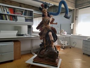 En estos momentos, en sus instalaciones se está trabajando en piezas provenientes de distintos puntos de la geografía española. Entre otras muchas se está interviniendo en un casco hallado en el castillo de Monreal de Ariza (Zaragoza); un verraco proveniente del embalse de Valdecañas (Cáceres); una escultura del ‘Arcángel San Miguel’ de Luisa Roldán, la Roldana, y un frontal de altar bordado, pertenecientes al Museo Diocesano de Córdoba; una carta del Rey Alfonso X a los alcaldes de Toledo de 1277; un sagrario del Museo Diocesano de León; el lienzo Avenida de los tilos de Gonzalo Bilbao del Museo de Albacete; y el sepulcro de Don Arnau de Valeriola del Museo de Bellas Artes de Valencia.