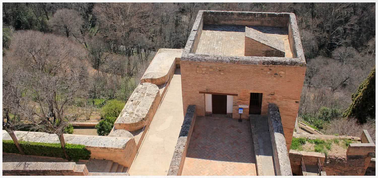 Cerrada habitualmente por motivos de conservación, la Torre de la Pólvora está situada en el extremo noroccidental y ligeramente avanzada en relación con la muralla, lo que le confería una situación estratégica para controlar a los atacantes que accedían por la vaguada situada a sus pies, actualmente Cuesta de Gomérez.
