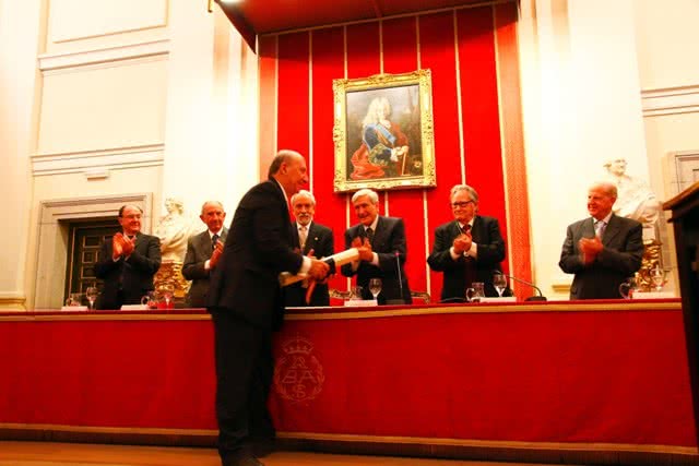 El presidente de la Fundación Santa María la Real, José María Pérez ‘Peridis’, recoge de manos del director de la Real Academia de Bellas Artes de San Fernando la Medalla de Honor 2014 de la Corporación académica.