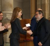 La Reina recordó uno de los mensajes de Jaume Plensa: «el arte debe iluminar al mundo y no el mundo al arte». «Desde su taller de Sant Feliú de Llobregat lanza a ese mundo que recorre de forma permanente su mensaje artístico, ese ‘pensamiento que llena la inmensidad’, recordando a su referente de siempre, William Blake. En el tránsito que el artista recorre desde la expresión personal hasta la colectiva, Plensa propone una visión holística y conciliadora. Una propuesta universal que le sitúa en el centro de la creación artística en su nivel máximo de excelencia y que hoy aquí reconocemos con este premio Velázquez de las Artes», concluyó Doña Letizia.