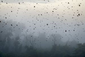 One of the greatest animal migrations anywhere on the planet arrives during November and December in a lush, marshy remote corner of Northern Zambia. Each year five million straw-coloured fruit bats (Eidolon helvum) take up residence in one hectare of Kasanka National Park’s mushitu swamp forest. The bats come to feed for a short six week period enticed by the abundance of seasonal fruits which include musuku, mufinsa and the other wild species in the area. In the fading twilight at dawn and dusk, the noisy chatter and activity from the colony increases thus filling the sky in all directions for twenty precious minutes as they leave and arrive at their roost site.