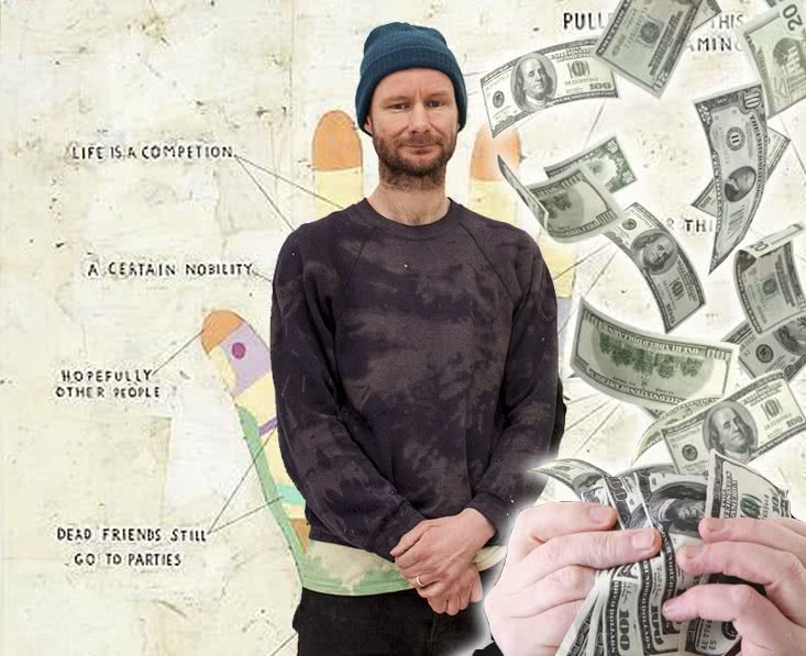 Evans reside y trabaja en Nueva York. Considerado como una figura atípica en el mundo del arte contemporáneo, practicó skateboard antes de escribir novelas cortas y canciones. Sus dibujos, gráficos y diagramas, esquemas y planos, clasificaciones e inventarios, son elementos gráficos a caballo entre la poesía concreta y la escritura automática.