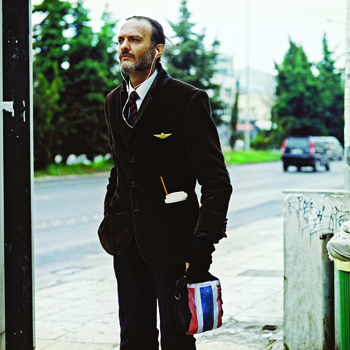 «Se dice que la fotografía pasa a ser el más ingenuo de todos los medios de comunicación debido a su intención y su capacidad para inmovilizar el tiempo. Es por eso que las fotografías son normalmente bellas pero tristes. El único tiempo que la cámara puede reproducir es el tiempo muerto, es el tiempo ya pasado. En los últimos cinco años, Atenas ha cambiado dramáticamente; toda la ciudad se ha transformado en una meseta negativa, inmovilizada en el tiempo. El flujo de la vida ha cambiado para sus habitantes. El tiempo no es suyo, es un tiempo robado y ya utilizado, que recuerda al tiempo ya pasado de la fotografía. La fotografía fue inventada en el siglo XX para describir el enorme flujo de información que comenzó a definir la vida urbana moderna. Hoy en día los medios de comunicación son mucho más complejos en la representación de vida cotidiana. Sin embargo, la fotografía conserva como privilegio su mayor desventaja: el tiempo fotográfico inmovilizado y pasado es el lienzo más adecuado para visualizar nuestros momentos congelados. La fotografía llega a su destino poético cuando narra la historia de los encarcelados, de esos hombres cuyo tiempo se gastó, de los hombres inmovilizados. Recordemos de Samuel Beckett su personaje Winnie, viviendo con la mitad de su cuerpo bajo el suelo, pero que pese a todo continúa moviéndose y viendo», afirma Karpouzis.