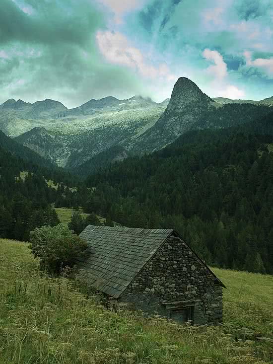 Otro camino remonta el río Cinqueta hasta las bordas de Viadós, espectacular imagen de extensas praderas alpinas que cubren las laderas y cortados que forma el río a su paso, bajo la imponente visión del inmenso macizo montañoso de Lardana o Posets, que con sus 3.375 metros es la segunda mayor altura de los Pirineos.