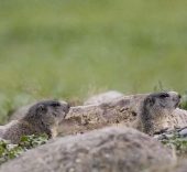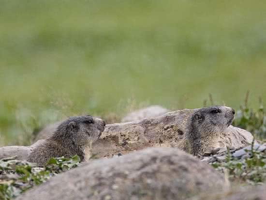 En algunas de estas praderas podemos tener unos curiosos vecinos. Al principio sólo llaman nuestra atención unos grandes agujeros que salpican el suelo. Permaneciendo quietos y silenciosos a una cierta distancia de ellos, y después de un tiempo, podemos observar a las marmotas saliendo de estos oscuros y húmedos agujeros para calentarse bajo el tan apreciado sol del mediodía.