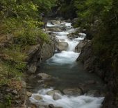 En algunos tramos el río salva el desnivel saltando en cascadas que remansan sus aguas en profundas y transparentes pozas, rodeadas por un umbrío bosque que aporta infinidad de matices verdes. Son rincones de naturaleza donde nuestra mente fácilmente se evade.