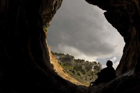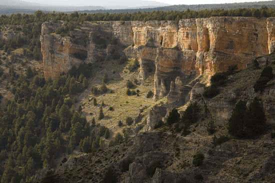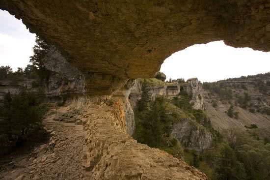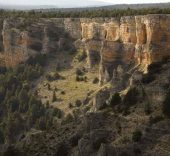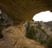 La senda continúa, dejando atrás el bosque, siempre bordeada por las grandes y oxidadas paredes del cañón. Los buitres leonados, con su vuelo fácil, planean sobre nuestras cabezas mientras caminamos adentrándonos en el corazón del parque. Es fácil ver también alimoches y otras rapaces protegidas. En algunas de las paredes hay grutas que se pueden visitar por su fácil acceso. Son miradores que encuadran el paisaje, dándole un enfoque diferente, y hacen volar nuestra imaginación hacía otro tiempo en el que nuestros antepasados habitaban este entorno para recolectar y cazar. En la zona se han encontrado utensilios y pinturas rupestres datadas en la Edad del Bronce.