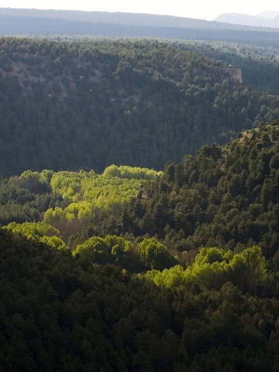 Para conocer este parque sólo hay que caminar por un cómodo camino que discurre paralelo al cauce del río, atravesando espesos pinares y sabinares de aromáticos olores, junto a refrescantes bosques de ribera. En algunas zonas, el agua se remansa formando tranquilas pozas que invitan a hacer un alto en el camino. Son rincones donde el relajante sonido del agua se mezcla con el canto de los pájaros y de las pequeñas ranitas que habitan estas aguas. El lento fluir del agua permite que los nenúfares desplieguen sus grandes hojas flotantes adornadas por sus luminosas flores de un intenso amarillo, entre densas eneas y la menta de las aguas.