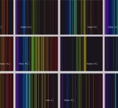 FRECUENCIAS, por su parte, explora la presencia de la luz en la materia. A partir del hecho de que todo lo conocido es una combinación compleja de los elementos reunidos en la Tabla Periódica –nuestro verdadero vital–, esta instalación permite imaginar cómo el rastro de luz que identifica a cada elemento se entrecruza con los demás, aportando así una metáfora de la Creación.