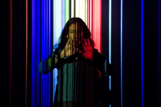 FRECUENCIAS, por su parte, explora la presencia de la luz en la materia. A partir del hecho de que todo lo conocido es una combinación compleja de los elementos reunidos en la Tabla Periódica –nuestro verdadero vital–, esta instalación permite imaginar cómo el rastro de luz que identifica a cada elemento se entrecruza con los demás, aportando así una metáfora de la Creación.