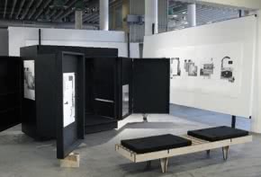 Las peanas típicas del alto modernismo que Xabier Salaberria presenta en Debacle no salpican la sala creando un recorrido dado sino que se ensamblan en una estructura a modo de unidades modulares. En el juego Tetris, al encajar en la estructura reticular, las unidades geométricas, sin dejar de estar allí, pasaban a desaparecer en una totalidad compacta e indiferenciada. De la misma manera, la estructura matriz de Debacle contiene en potencia todos los diseños posibles de un espacio expositivo. Alberga así la promesa de la exposición como experiencia estética desarrollada en el espacio y el tiempo frente a una concepción del display como relleno y ocupación arbitraria del espacio.